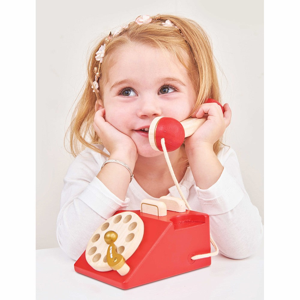 Superbe téléphone rotatif dans un design rétro élégant de Le Toy Van. Utilisez le téléphone pour développer la reconnaissance des numéros de votre enfant et notamment pour développer les compétences linguistiques de votre enfant.